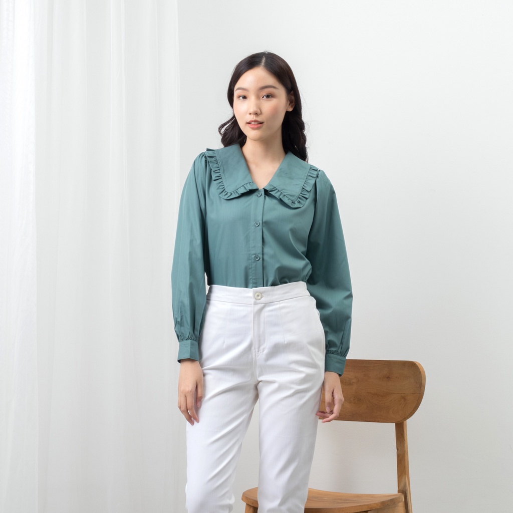 - Material: premium polycotton (anti lecek yah tapi adem dan lembut banget, ada sedikit kilap juga jadi mewah) - Detail kerah frill manis ala korea - balloon sleeve detail