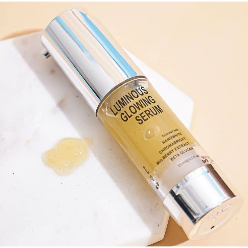 Luminous glowing serum ( whitening booster ) Merupakan serum premium dgn kandungan whitening agent yg mampu membooster kandungan bahan aktif dalam cream malam dan cream pagi sehingga dapat menghasilkan kulit tampak putih lebih cepat, menaikan toner wajah, memudarkan noda wajah dan flek.