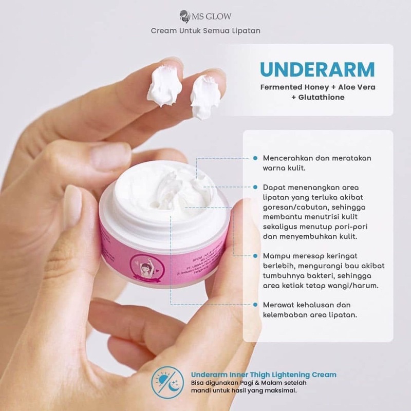 Cream ini dapat digunakan pada area ketiak, siku, lutut, dan sebagainya. Underarm Inner Thigh Lightening Cream memiliki kandungan utama Fermented Honey, Clair Blanched & Aloevera extract membuat cream ini sangat diunggulkan karena dpt 2 x lipat mencerahkan ketiak . Kamu cukup menggunakannya setiap habis mandi dan menjelang tidur, agar hasilnya lebih efektif beauties . Isi : 15 ml