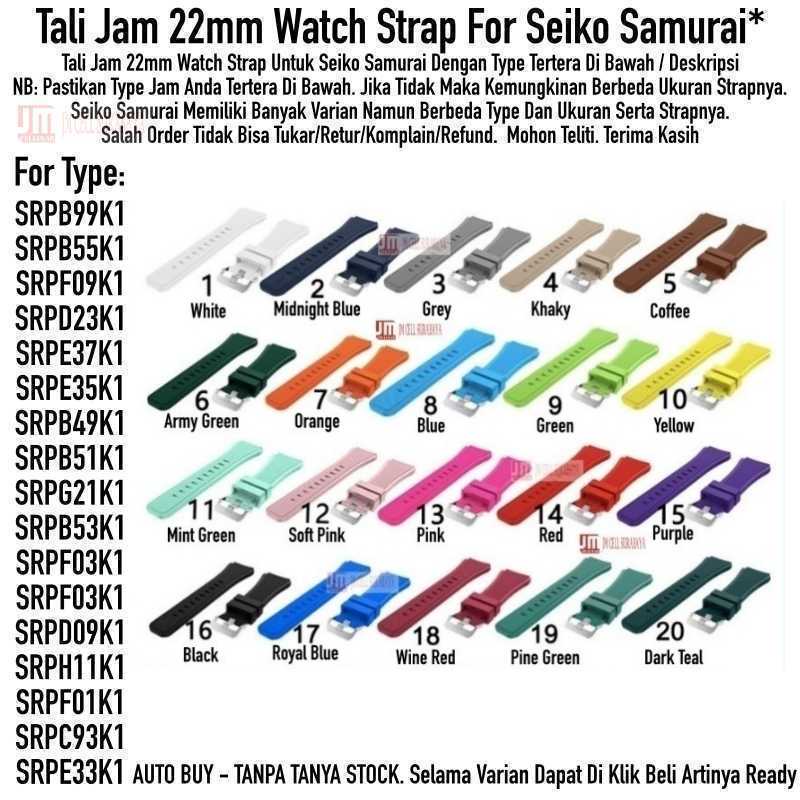 NB: Pastikan Type Jam Anda Tertera Di Bawah. Jika Tidak Maka Kemungkinan Berbeda Ukuran Strapnya. Tidak Semua Seiko Samurai memiliki ukuran strap 22mm. Seiko Samurai Memiliki Banyak Varian Namun Berbeda Type Dan Ukuran Serta Strapnya. Salah Order Tidak Bisa Tukar/Retur/Komplain/Refund. Mohon Teliti. Terima Kasih