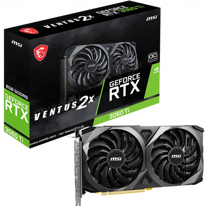 Model Name GeForce RTX™ 3060 Ti VENTUS 2X OC Graphics Processing Unit NVIDIA® GeForce RTX™ 3060 Ti Interface PCI Express® Gen 4 Cores 4864 Core Clocks Boost: 1695 MHz Memory Speed 14 Gbps Memory 8GB GDDR6 Memory Bus 256-bit Output DisplayPort x 3 (v1.4a) / HDMI 2.1 x 1 HDCP Support Y Power consumption 200W Power connectors 8-pin x 2 Recommended PSU 650W Card Dimension (mm) 232 x 124 x 52 mm Weight (Card / Package) 827 g / 1250 g DirectX Version Support 12 API OpenGL Version Support 4.6 Maximum Displays 4 VR Ready Y G-SYNC® technology Y Adaptive Vertical Sync Y Digital Maximum Resolution 7680 x 4320
