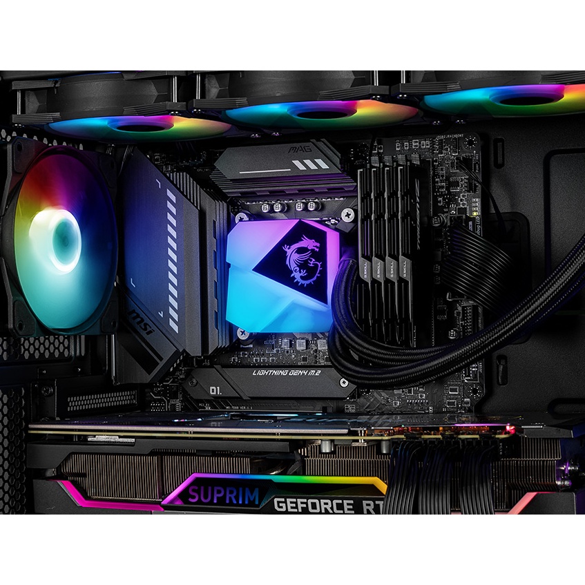 REBELLIOUS AND DISTINCT -The MAG CORELIQUID C Series liquid cooler provides out of box support for LGA 1700. -The pump has been integrated into the radiator for sound dampening and noise reduction. -A split pathway through the radiator rapidly dissipates heat, cooled liquid is then pumped back into the loop. -A durable three phase motor at the core of the pump generates minimal vibrations for long-lasting operation. -Constructed with three layers of netted plastic tubing and a reinforced mesh exterior.