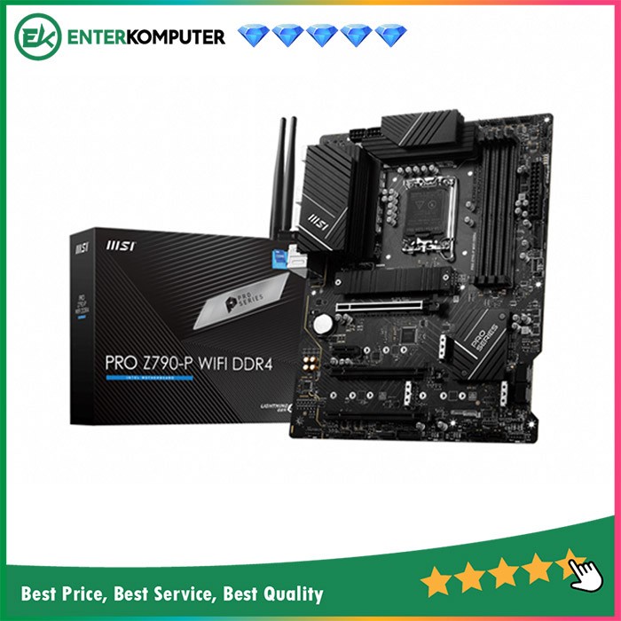 SPECIFICATIONS Model Name PRO Z790-P WIFI DDR4 CPU Support Supports 12th/ 13th Gen Intel® Core™ Processors, Pentium® Gold and Celeron® Processors CPU Socket LGA 1700 Chipset Intel® Z790 Chipset Expansion Slots 1x PCIe 5.0 x16 slot 1x PCIe 4.0 x16 slot 2x PCIe 3.0 x1 slots Display Interface Support 4K@60Hz as specified in HDMITM 2.1, DisplayPort 1.4 – Requires Processor Graphics Memory Support 4 DIMMs, Dual Channel DDR4 5333+MHz (OC) Storage 4x M.2 Gen4 x4 64Gbps slots, 6x SATA 6Gbps ports USB ports 1x USB 3.2 Gen 2x2 20G (1 Type-C), 2x USB 3.2 Gen 2 10Gbps (1 Type-A + 1 Type-C), 6x USB 3.2 Gen 1 5Gbps (6 Type-A), 8x USB 2.0 LAN Intel® 2.5G LAN WiFi / BT Intel® Wi-Fi 6E, Bluetooth 5.3 Audio 8-Channel (7.1) HD Audio with Audio Boost