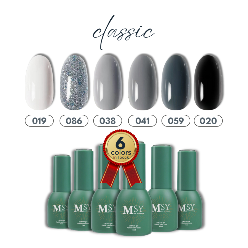 MSY Paket Kutek Gel UV LED 15ml/Nail Gel Set Polish 6 Warna/Clasic Neutral Colorfun Red Rose Jelly/Glitter Gel Nail Polish Kit Popular