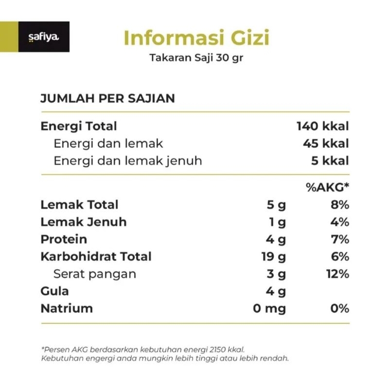 Manfaat dan kandungan Muesli Safiya : 1. Lebih sehat dari sereal biasa Muesli Safiya mengandung sedikit gula dan lebih sedikit kalori, menjadikannya lebih sehat daripada sereal lainnya.