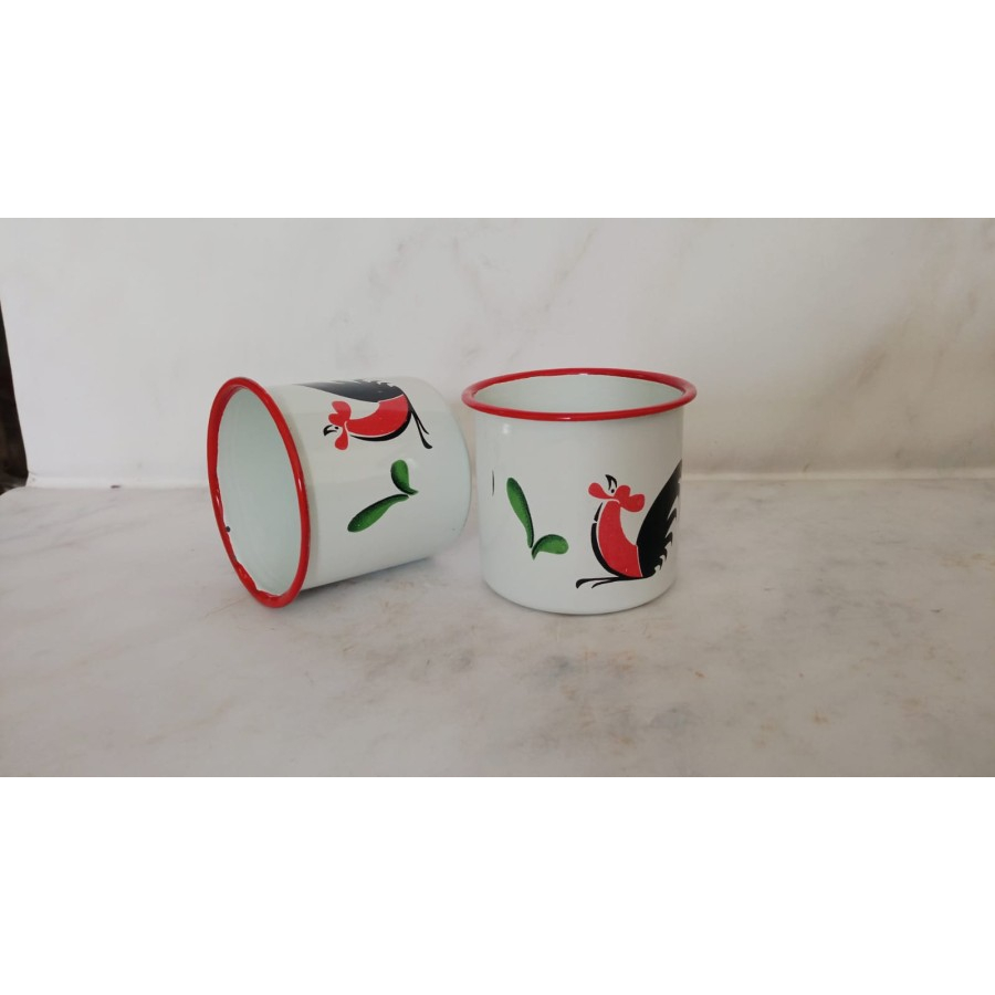 Perlengkapan Rumah > Peralatan Makan > Cangkir, Mug, & Gelas > Mug Enamel 7 Jago Putih List Merah