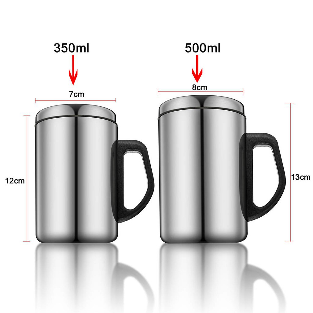 Deskripsi Produk : - Bahan dalam dan luar Stainless steel - Handle dari Bakelite tahan panas - Dilengkapi dengan tutup gelas - Bisa untuk panas dan dingin - Mudah di bersihkan - Desain elegant dan minimalis - Cocok untuk minum kopi, coklat panas, teh, dll. - Kapasitas 500 ml - Ukuran produk (Diameter 8 cm dan tinggi 13 cm)