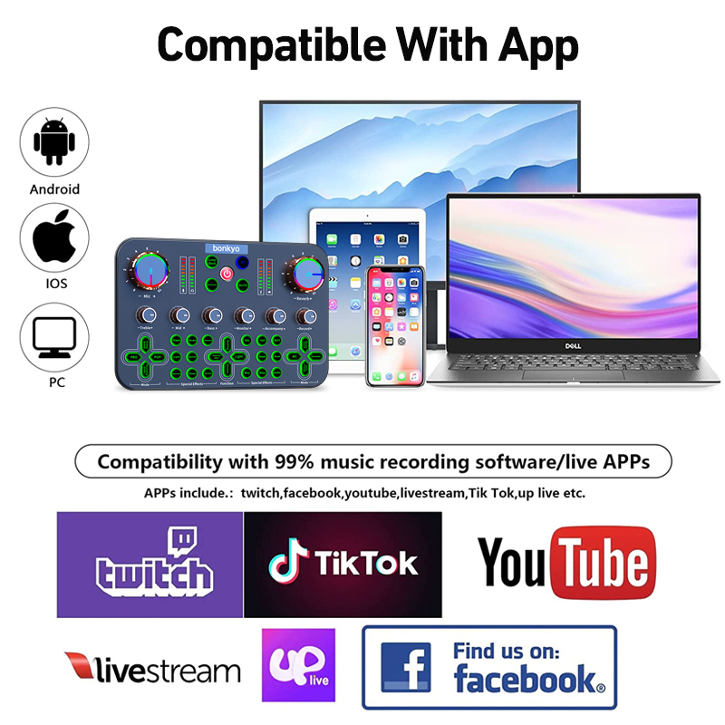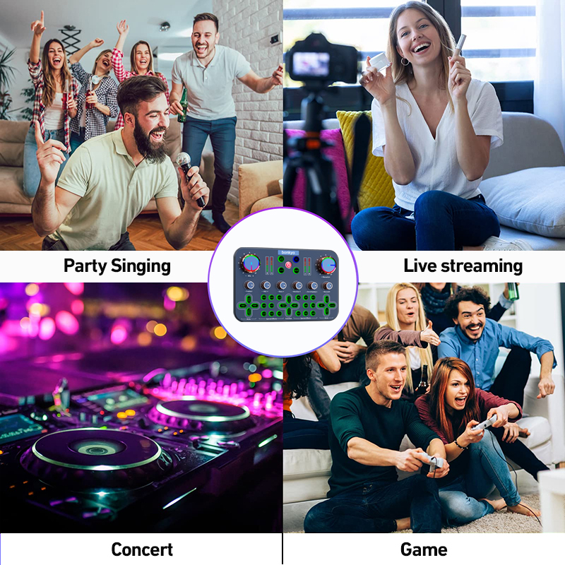 Fitur Produk: ✨F1000 kartu suara adalah mixer siaran langsung karaoke profesional dengan chip DSP digital built-in; mendukung semua platform siaran langsung, mendukung sakelar pencampuran, kontrol bisu input mikrofon, reverb suara indah, mikrofon teriakan kualitas teks, suara efek khusus;