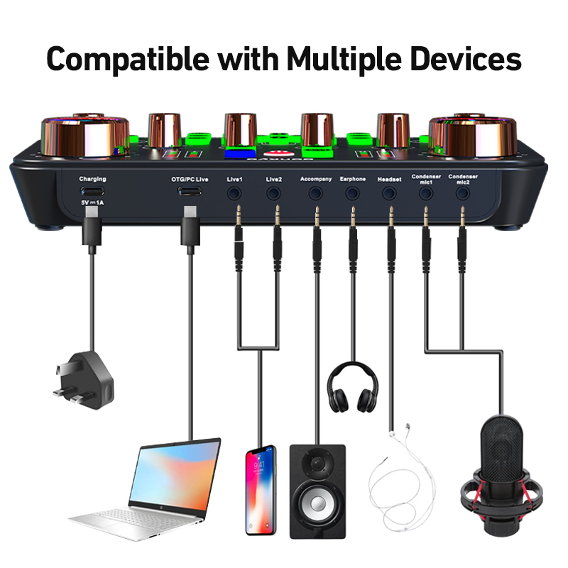 ✨Beberapa antarmuka audio Kartu suara ini memiliki banyak colokan, yang dapat dihubungkan ke berbagai perangkat audio secara bersamaan, seperti ponsel pintar, mikrofon, speaker, dll., Untuk menciptakan efek ktv rumah;