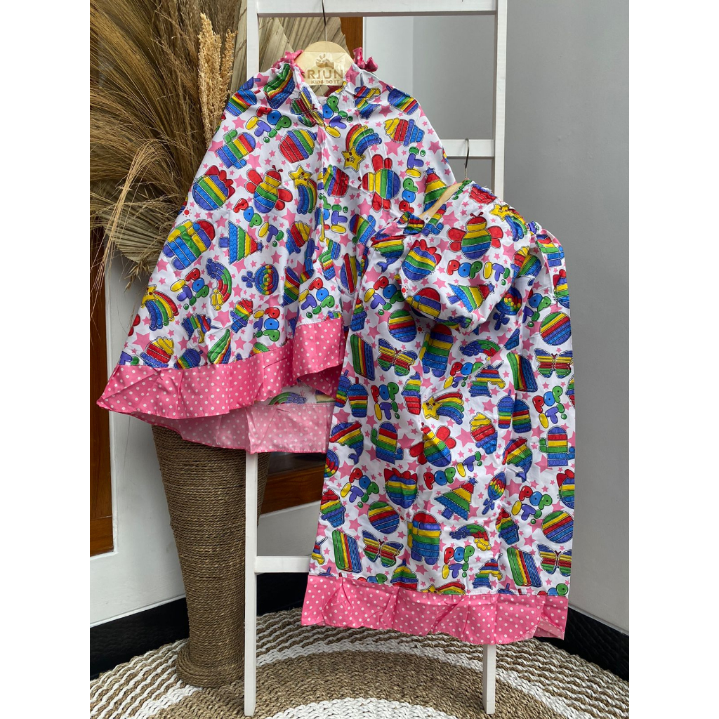 Mukena motif anak berbahan nyaman buat buah hati kesayangan.