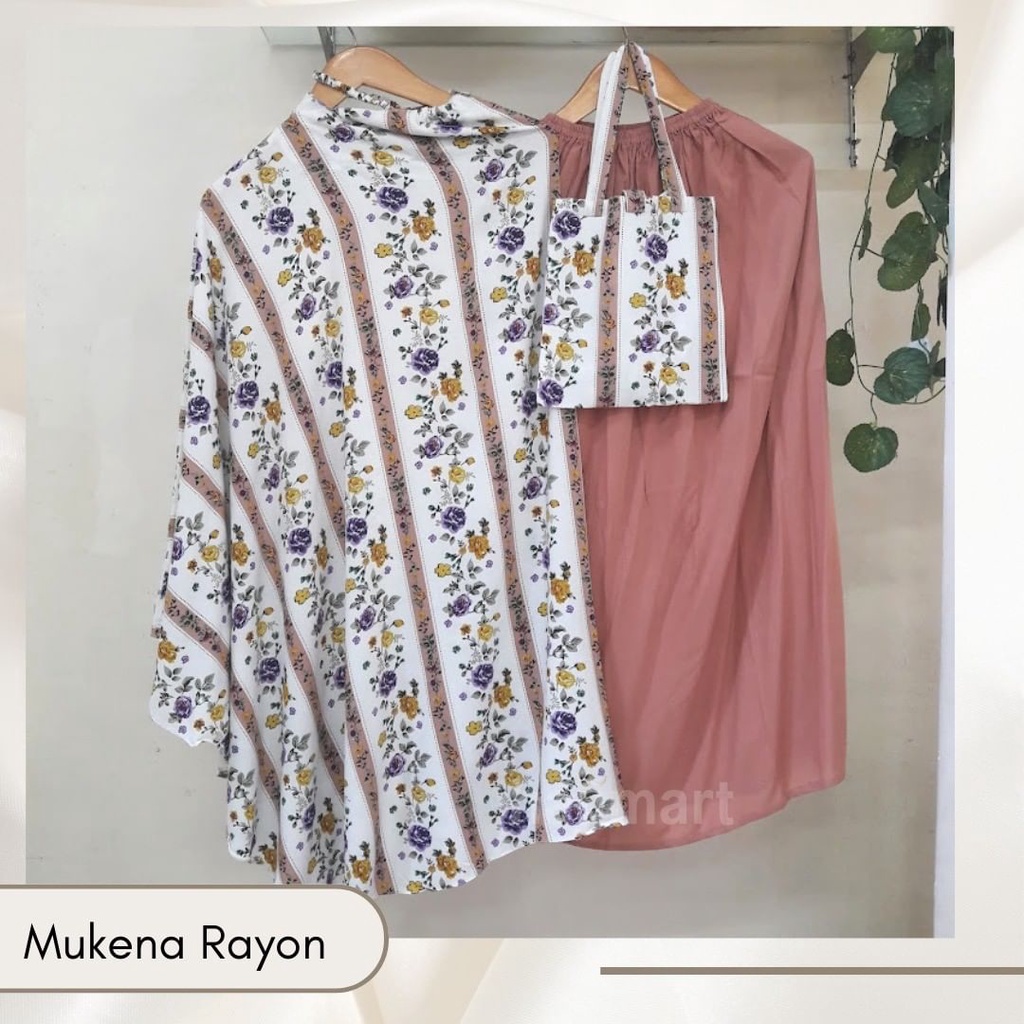 Bahan Rayon Premium (halus, adem, bahan jatuh) Tali kepala karet Dilengkapi dengan tas dan sajadah (sesuai motif dan warna) Untuk anak usia 6-10 tahun Varian warna