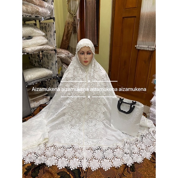 Fashion Muslim > Mukena & Perlengkapan Sholat > Mukena > mukena delima putih swarovsky kd full sutra