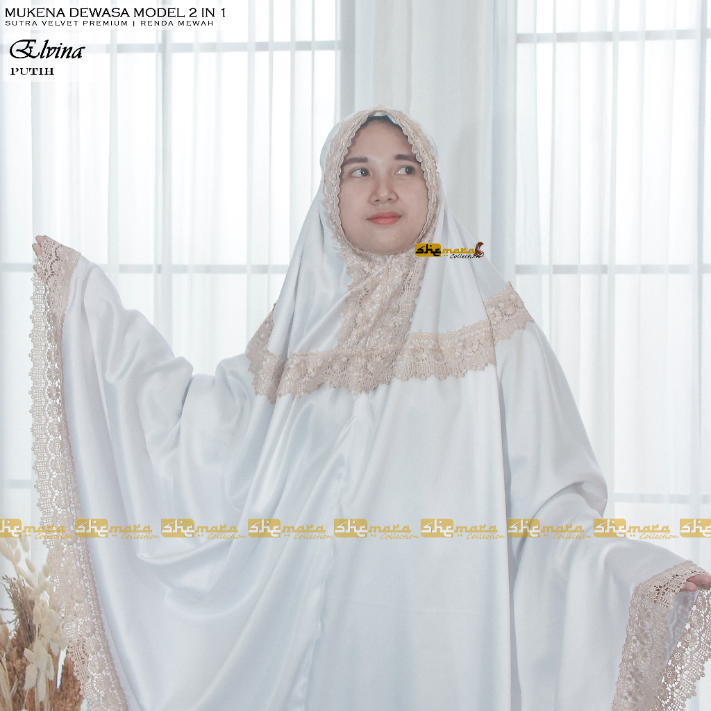 Mukena terbaru dengan Model 2in1 Elvina Series dari bahan Silk Velvet Premium yang Lembut dan Glossy, dipadukan dengan Renda Gyper Gold sehingga membuat mukena ini Terlihat Anggun dan Mewah saat dipakai, disertai dengan ukuran Jumbo. Sangat cocok digunakan untuk Acara Besar, Sehari-hari, ataupun untuk di bawa Traveling.