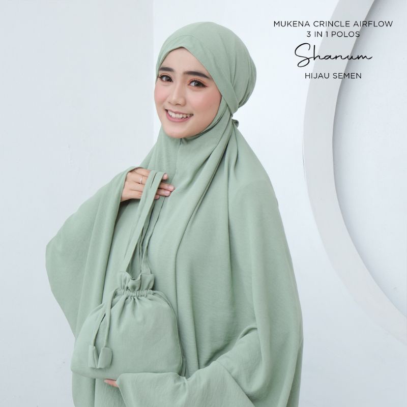 Fashion Muslim > Mukena & Perlengkapan Sholat > Mukena > Mukena Dewasa Crinkle Airflow 3in1 Premium Jumbo Mukenah Polos Crincle Lesty French khimar Plus Tas Mini Pouch
