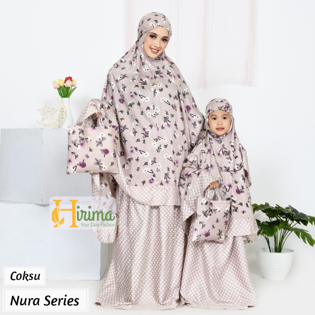 ada motif : motif sajidah terdiri dari 4 ukuran pilih sesuaikan dg ukuran asli(tertera hanyalah rekomendasi umur) *Nura jumbo ibu *Nura anak 6-8th *Nura anak 3-5th