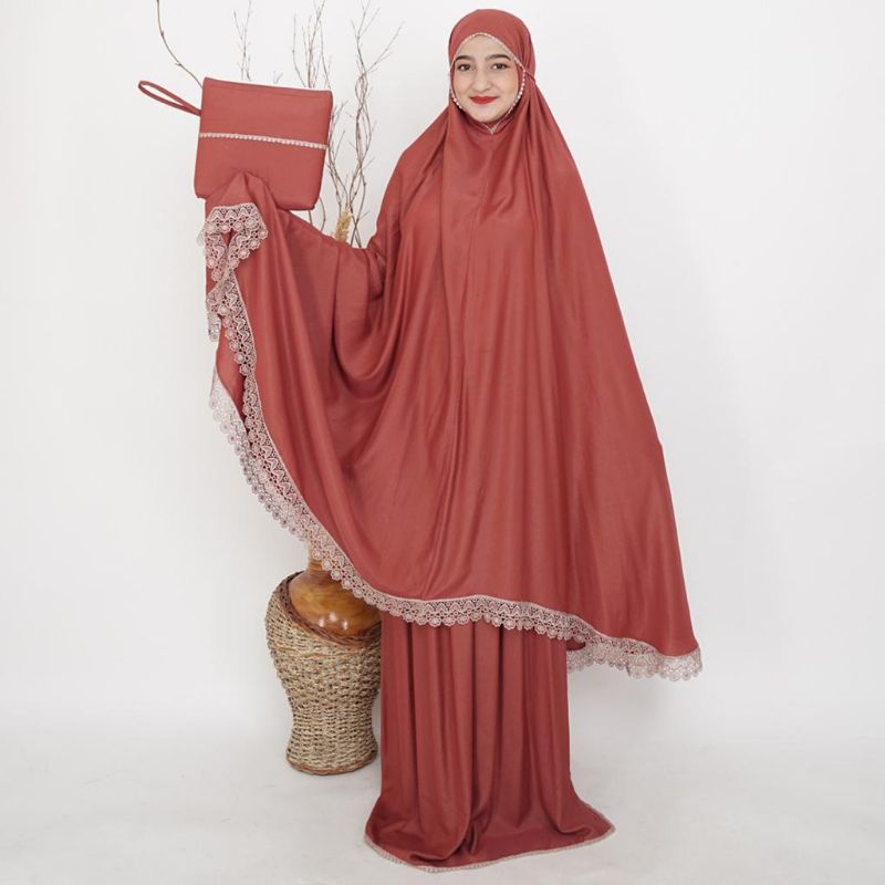 # Terbuat dari bahan katun # Ukuran jumbo # Ada Renda di bagian bawah mukena # Panjang mukena 130cm # Panjang rok 110cm # Max keliling 130cm
