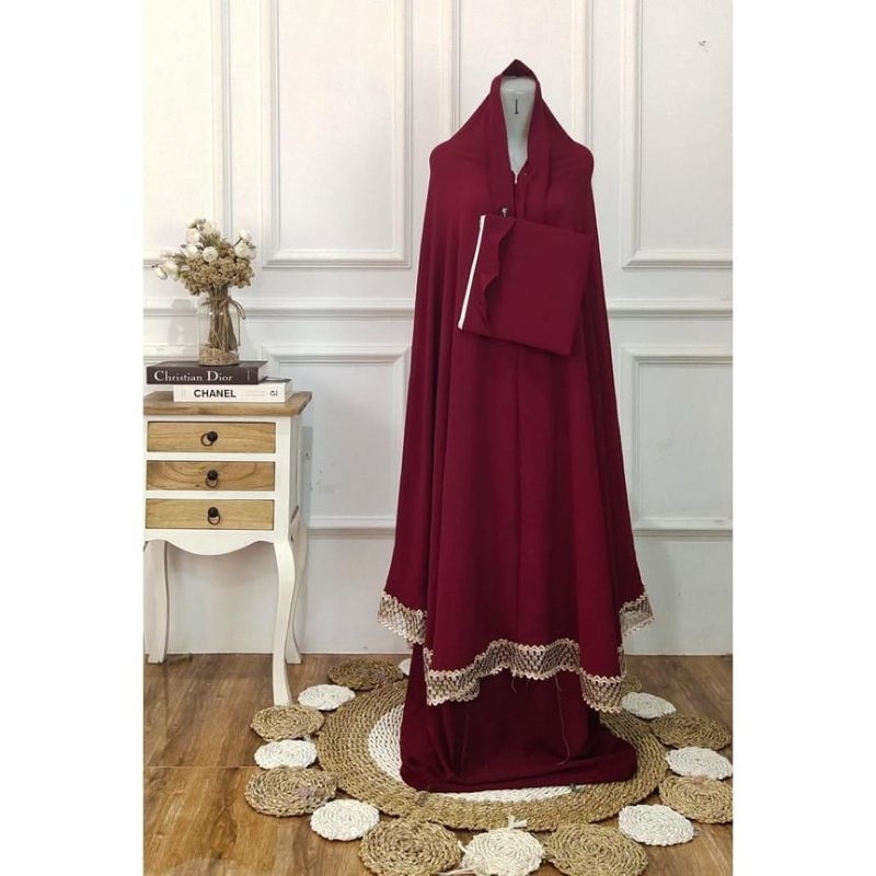 Detail MUKENA LESTI RENDA CRINGKLE AIRFLOW MIX RENDA KHADIZA CANTIK SYARI JUMBO PERLENGKAPAN SHOLAT