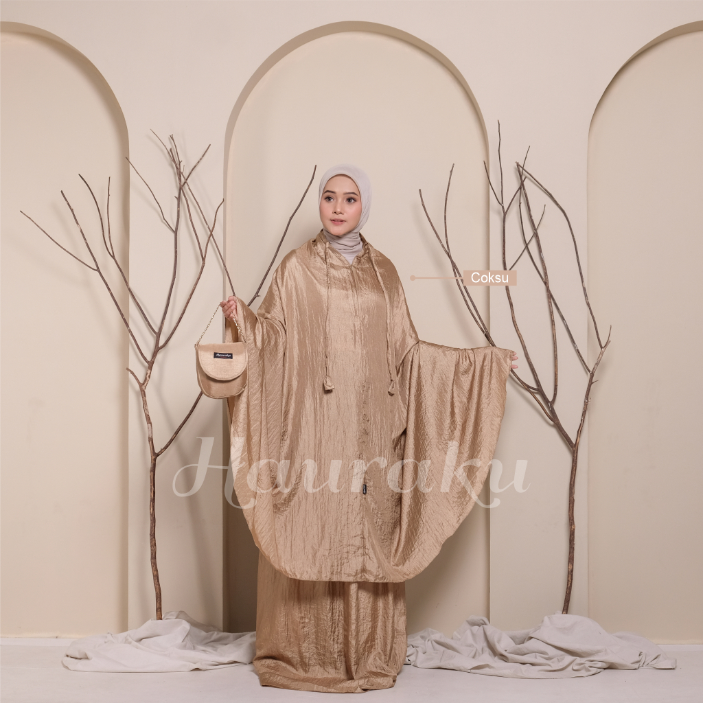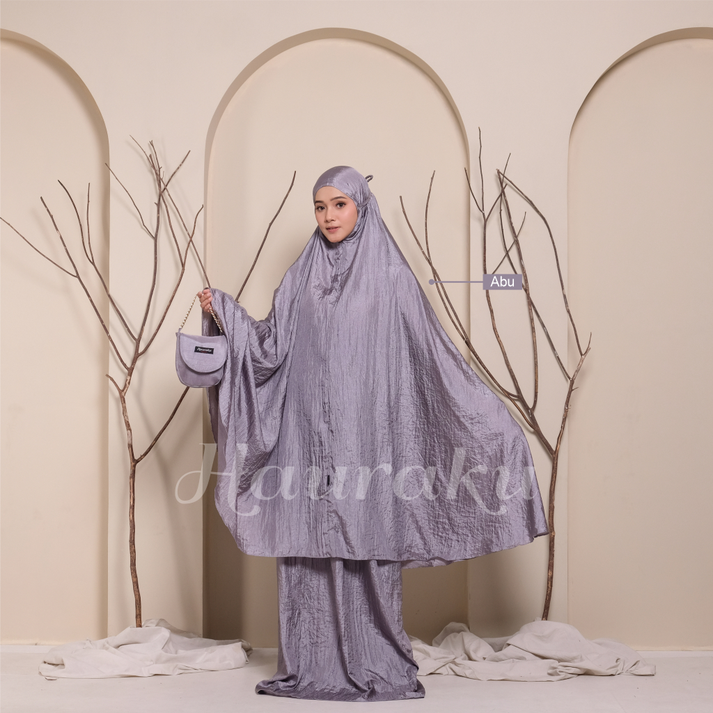 Mukena Parasut Premium Mukena Traveling Hauraku merupakan produk terbaru yang terbuat dari bahan parasut premium tidak menerawang sehingga sangat nyaman digunakan untuk beribadah sehari-hari.