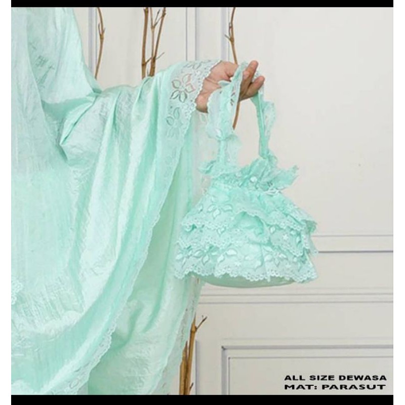 mukena bahan parasut super premium .dengan tas renda cetarr.ukuran besar .warna fariatif lembut dan nyaman dipakai buat berpergian.mukena ini terdiri dari atasan. bawahan tas free sajadah mungka yang cantik.