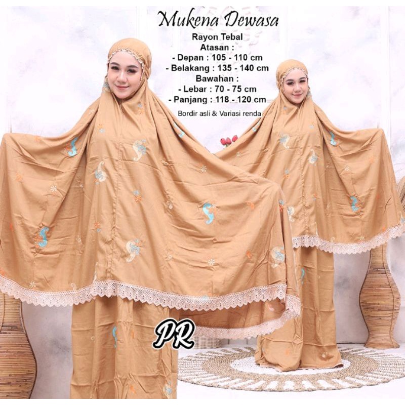 Informasi Produk : mukena rayon motif keong renda rajut - Model mukena : atasan dan bawahan. - Bahan katun rayon. - Ada tas mukena. - Ikat kepala model karet