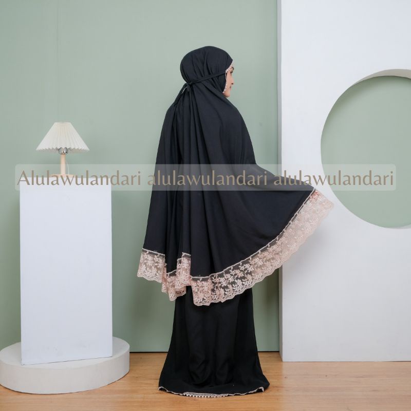 Detail mukena resleting 2 in 1 dewasa jumbo katun renda tile glossy mewah KIRANA series