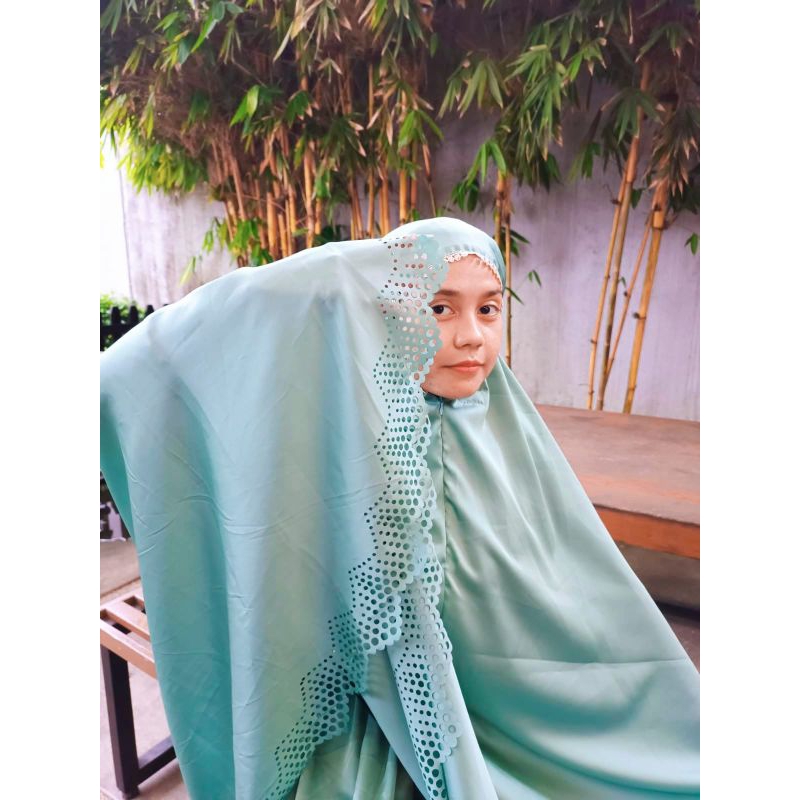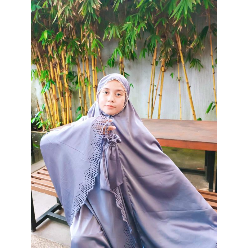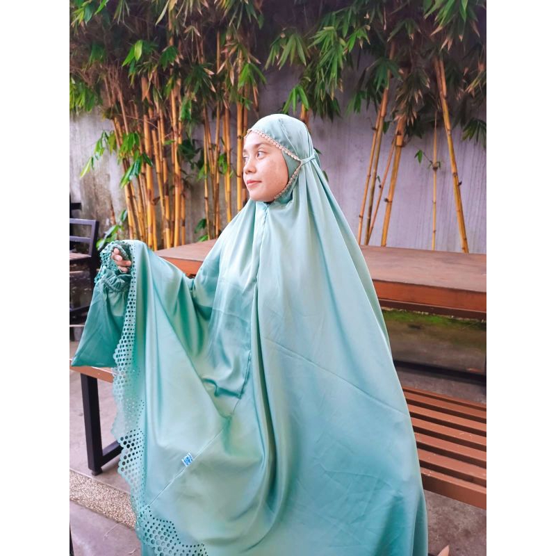 Detail Ukuran Mukena Panjang atasan depan 120 cm Panjang atasan belakang 129 cm Panjang Bawahan 115 cm Lebar Bawahan 73x2
