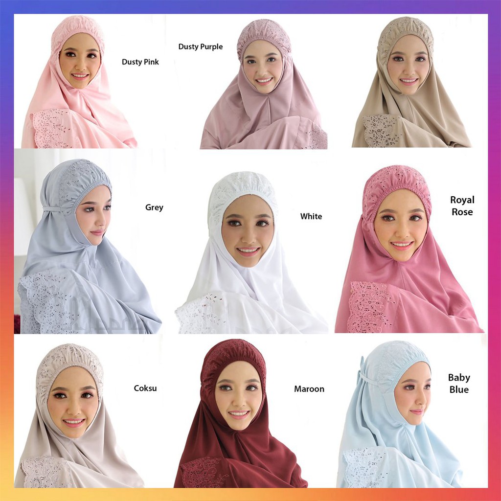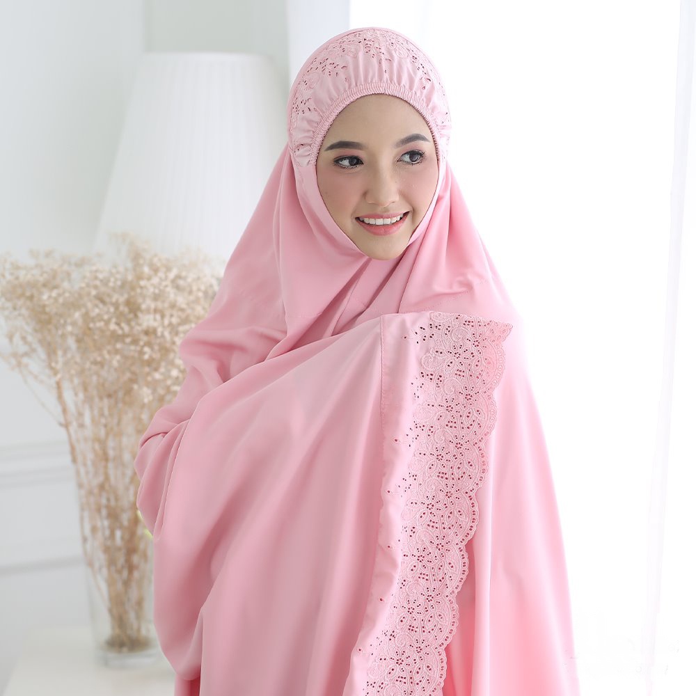 Mukena siti khadijah terbuat dari bahan katun mikro, tidak kusut ataupun berminyak, tidak menerawang, lembut, adem, berwarna pastel dan bordir yang cantik, dan tentu saja nyaman di pakai.