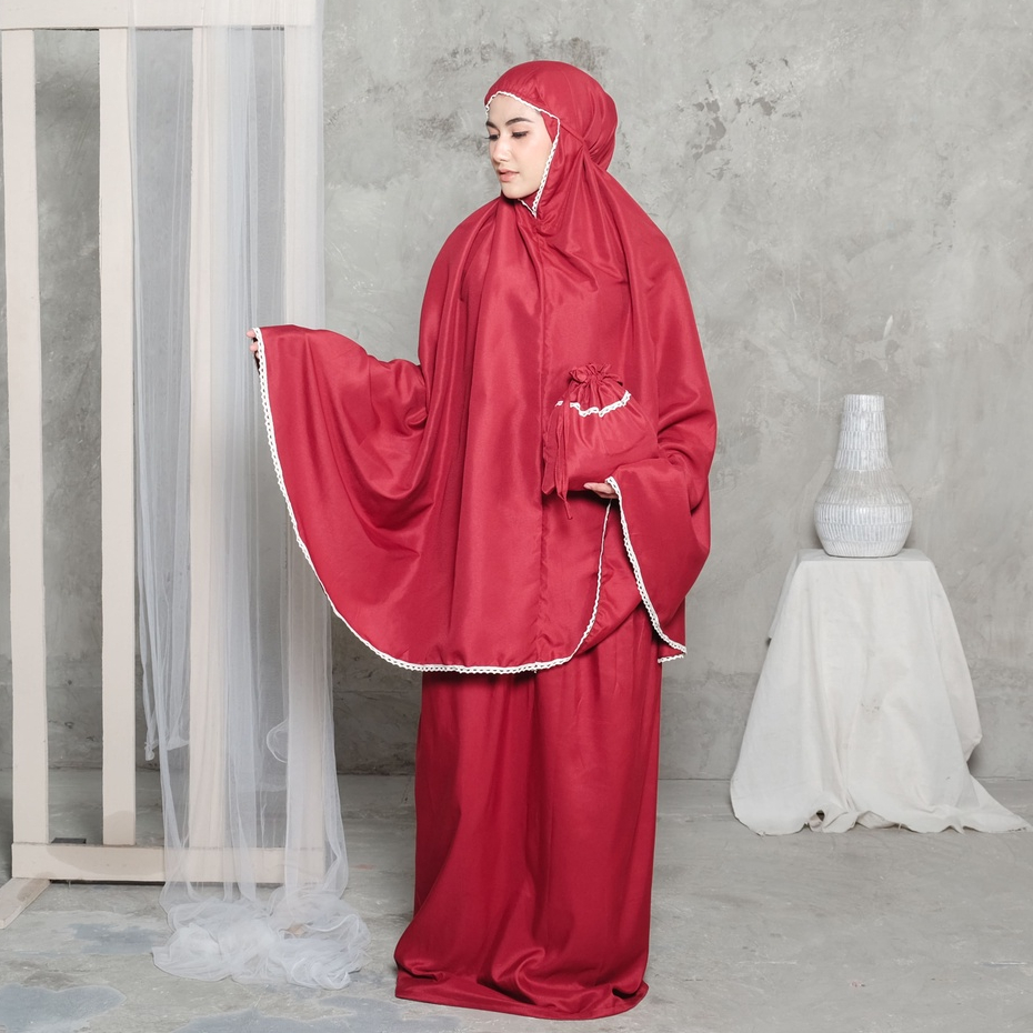 Detail Mukena Travel Dewasa Bahan Katun Mikro Motif Polos Pinggiran Renda Mukena Mikro Dewasa