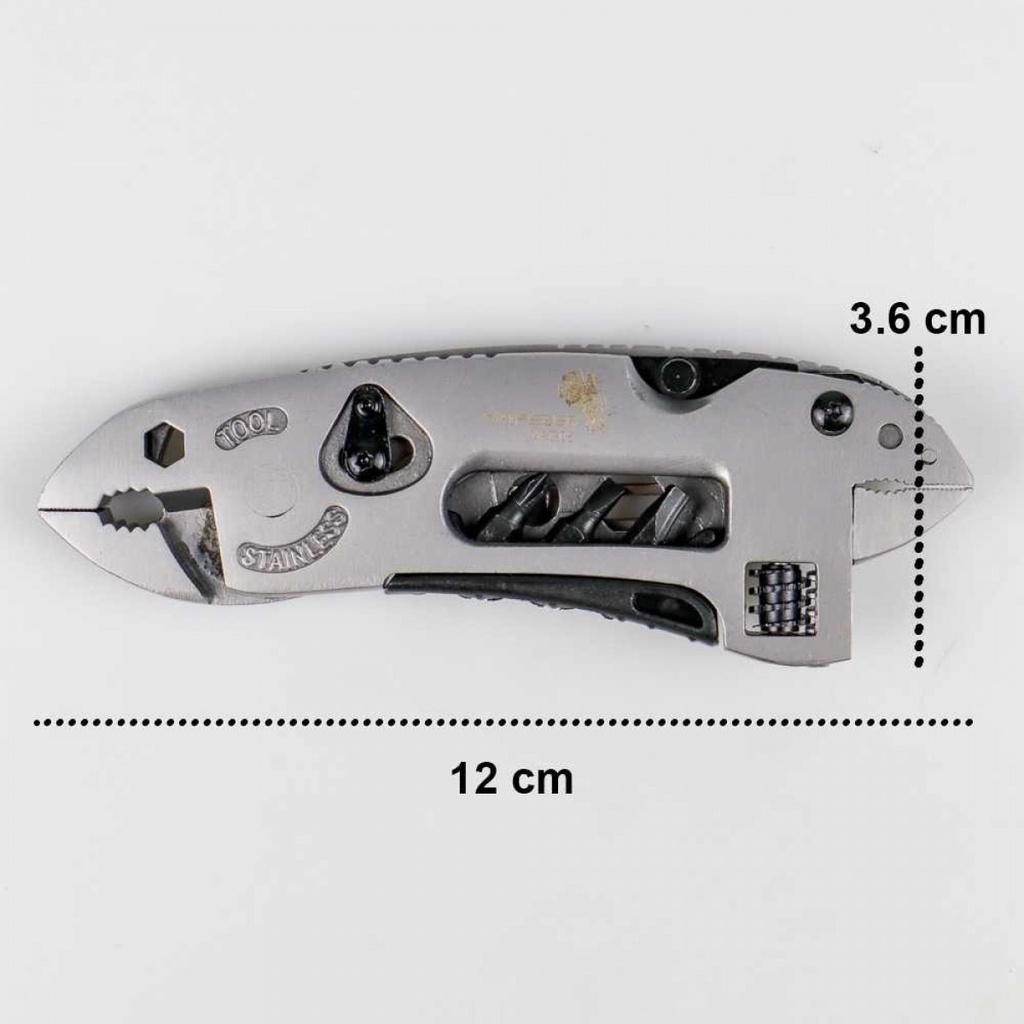 Multifunction Tools Memiliki berbagai macam tools seperti pisau mini, gergaji, tang, obeng & kunci pas.