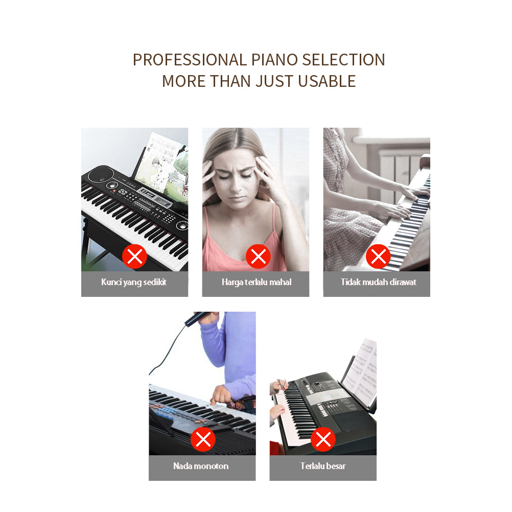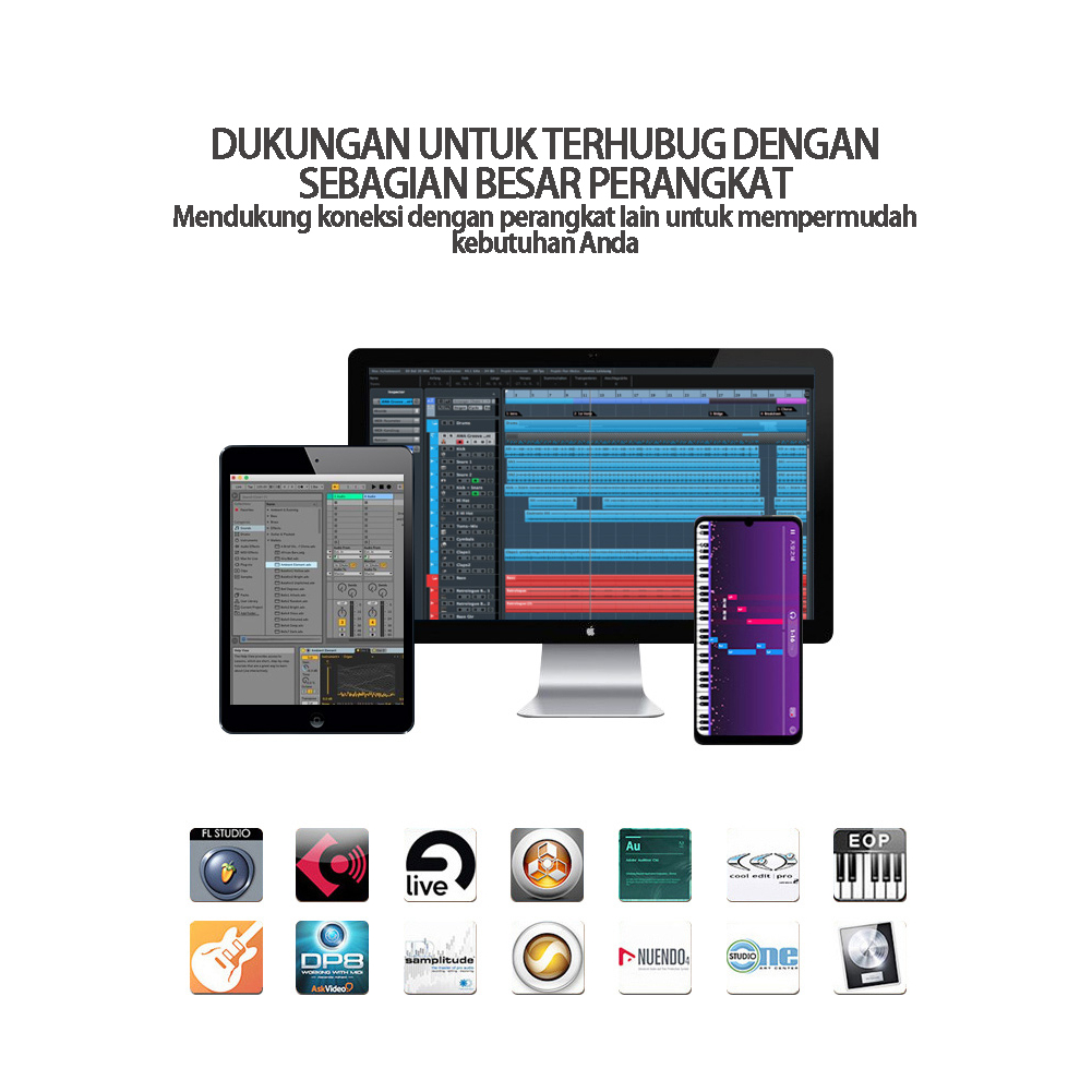 fitur: Kompatibel dengan berbagai perangkat lunak arranger, kualitas suara mengadopsi suara surround stereo kesetiaan tinggi, dilengkapi dengan speaker stereo, yang dapat digunakan sebagai audio. Baterai lithium-polimer berkapasitas besar, siap digunakan, masa pakai baterai yang lama, mudah dibawa. Ini memiliki antarmuka / tombol yang multifungsi dan kaya. Rasio ukuran piano 1:1, produksi presisi ukuran piano standar. Kunci berat standar rentang penuh, pulihkan kedalaman tuts piano. Mendukung mode headphone, berlatih tanpa suara sesuka Anda, dan berlatih larut malam tanpa mengganggu orang. Kompatibel dengan berbagai perangkat lunak pengaturan, kualitas suara mengadopsi suara surround stereo kesetiaan tinggi.