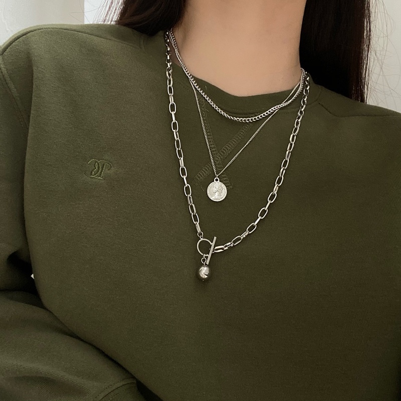Detail Multilayer Necklace Accessories Personality Round Head Pendant Trendy
