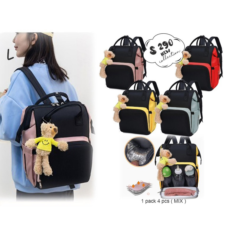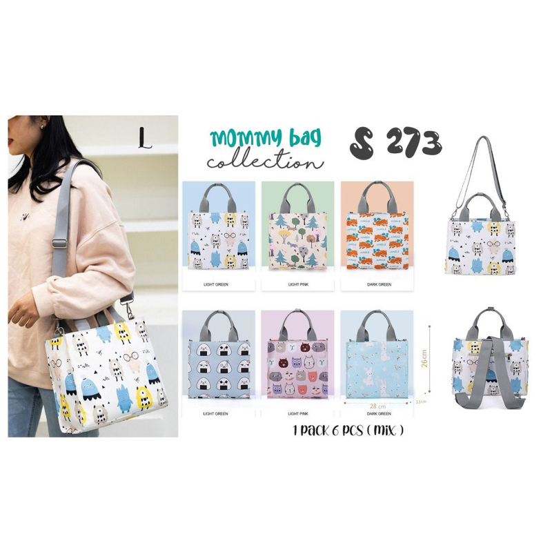 Desain modis Bagian dalam tas terdapat banyak terdapat kantong sehingga barang2 lebih terorganisir Di bagian luar tas terdapat 2 kantong samping yang bisa digunakan untuk menyimpan botol susu Bisa digunakan sebagai tas ransel dan tas tangan .