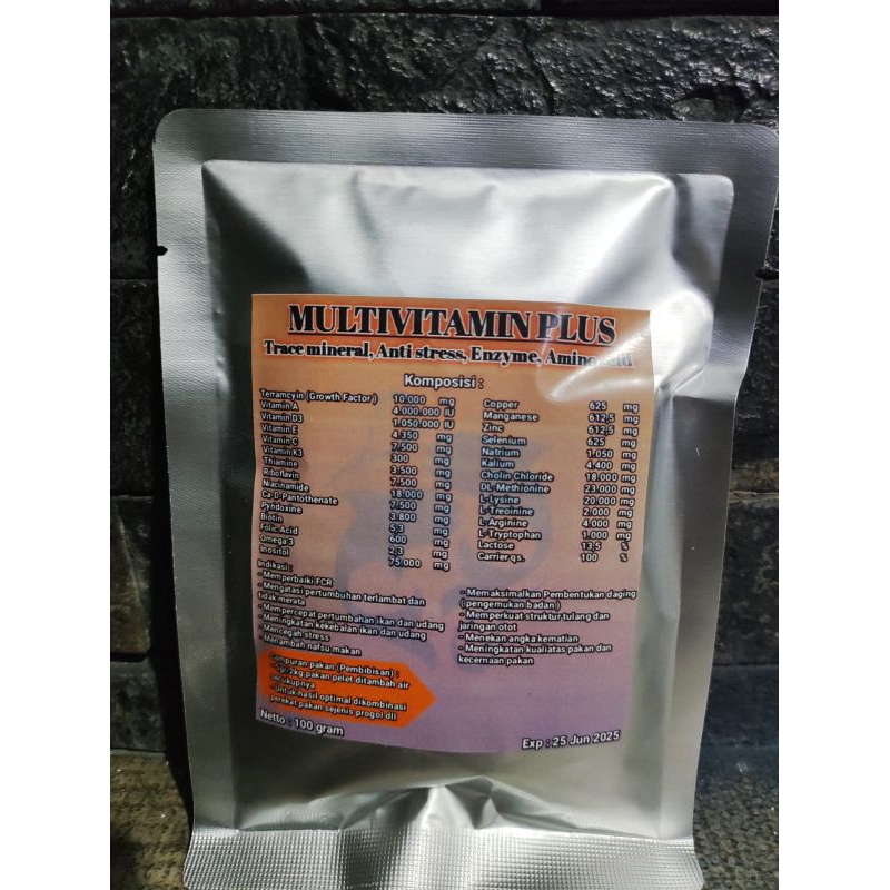 Multivitamin plus merupakan multivitamin terlengkap dan mineral, sangat baik untuk meningkatkan pakan dengan kandungan terlengkap dijadikan satu... formula feed additive yang secara optimal menjaga keseimbangan nutrisi, meningkatkan produktifitas dan performa ikan.