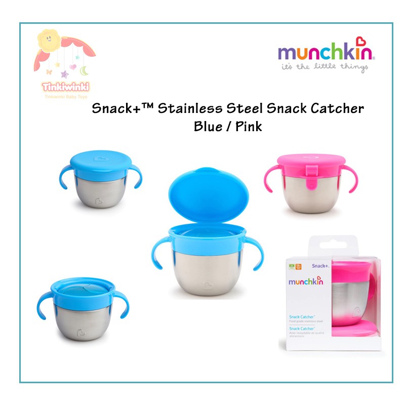Premium, stainless steel toddler snack container with lid and soft flaps for easy food access Flip-top lid seals container to keep snacks fresh Snack catcher top with handles screws on and stays put Light-weight and easy to clean Fits most standard cup holders in cars, carseats, strollers, etc. Great for home, daycare or on-the-go use Holds up to 9 ounces of snacks BPA-free, top rack dishwasher safe 12+ months #twmunchkin #jualmunchkin #munchkinbowl #peralatanmakanbayi #munchkinfoodfeeder #munchkinindo #jualbotolbaby #jualfoodfeedee #munchkinjakarta #jualmunchkinoriginal #babystore #babystuff #jualperlengkapanbayi #babyshop