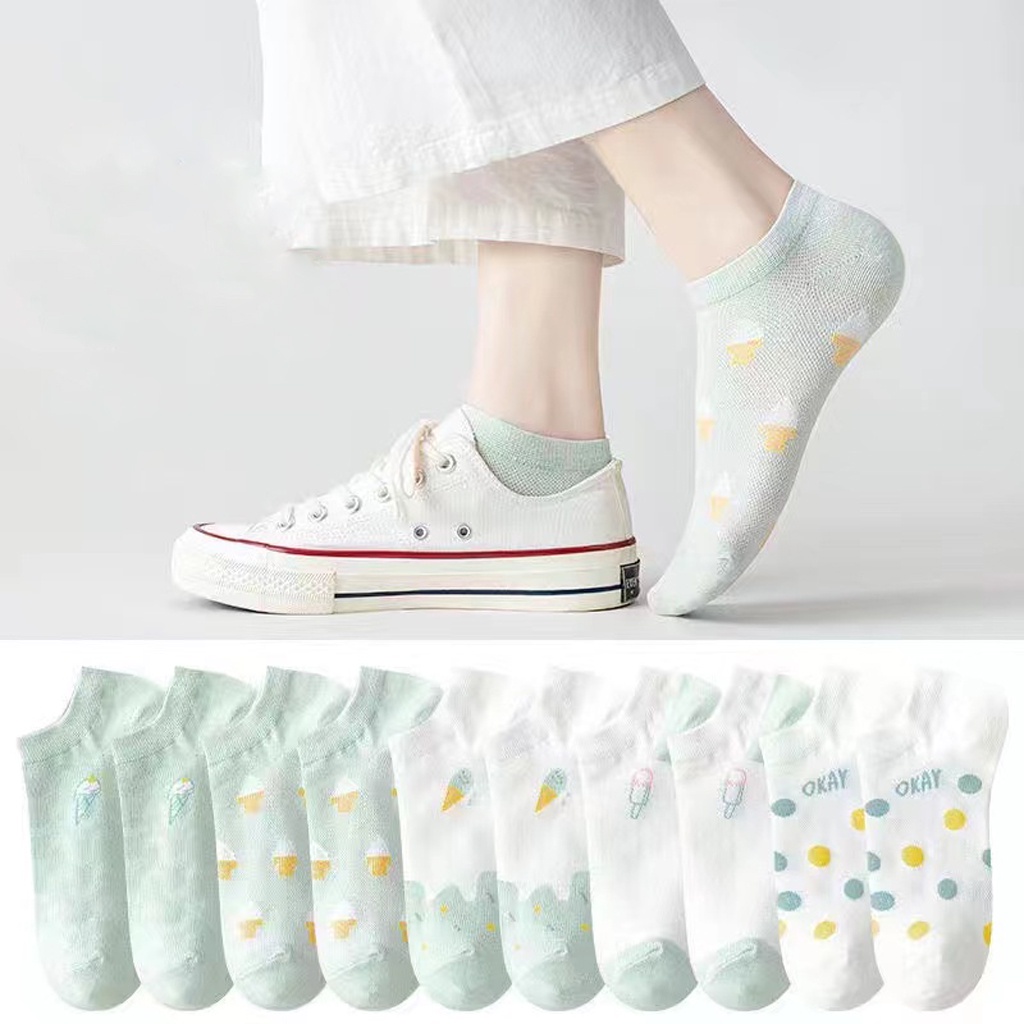 Detail MurmerOfficial Kaos Kaki Wanita Motif Ice Cream Kaoskaki Fashion Korea Women Sock Import KK028