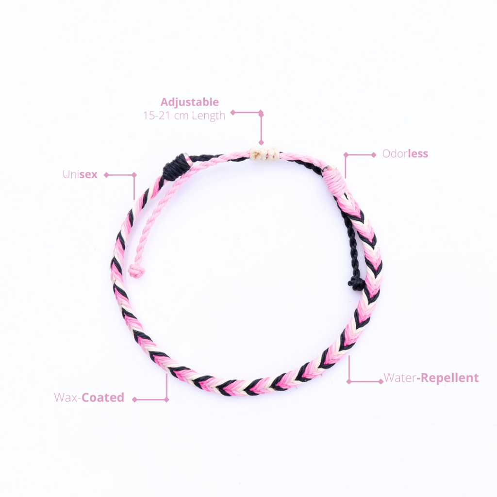 - 100% waterproof - Handcrafted braided by our local artisans - Wax-coated - Adjustable from 2-5 inches in diameter - Because jewelry products are handcrafted by artisans, dimensions may vary from piece to piece