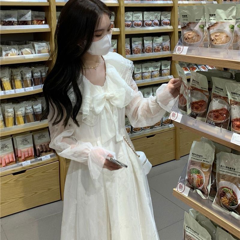 Detail Musim panas baru rok panjang temperamen gaun ikatan simpul wanita Prancis