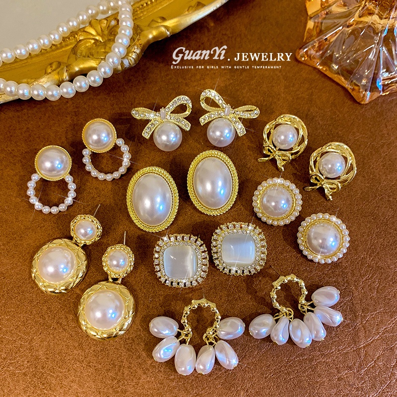 Detail Musim Panas Mutiara Stud Earrings Ladies Vintage Anting Hijab Fashion Indah Anting Aksesoris