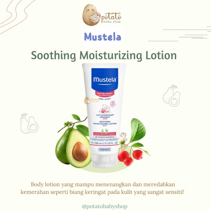 Mustela Soothing Moisturizing Body Lotion is a daily baby body lotion that protects and relieves your baby's sensitive skin. Our natural fragrance-free formula is specifically designed for babies and children with very sensitive, rashy or reactive skin. Mustela Soothing Moisturizing Body Lotion penetrates effortlessly to deliver immediate and long-lasting moisture.