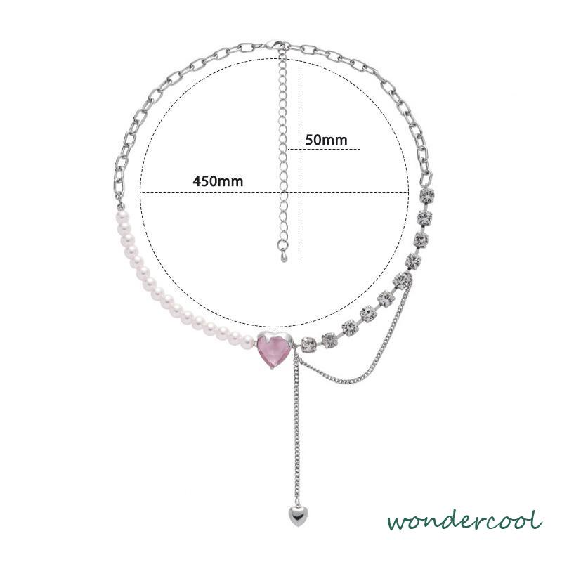 🌈Selamat datang di "wondercool"! ❤Best service ❤jaminan kualitas 100% ❤Selamat berbelanja, kepuasan Anda adalah pengejaran kami!Mutiara Cinta Jahitan Kalung Wanita Desain Niche Manis Keren Cahaya Mewah Rantai Tulang Selangka