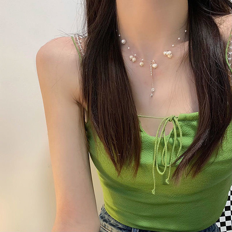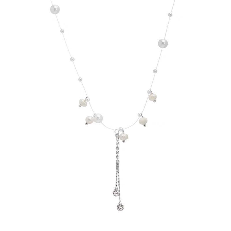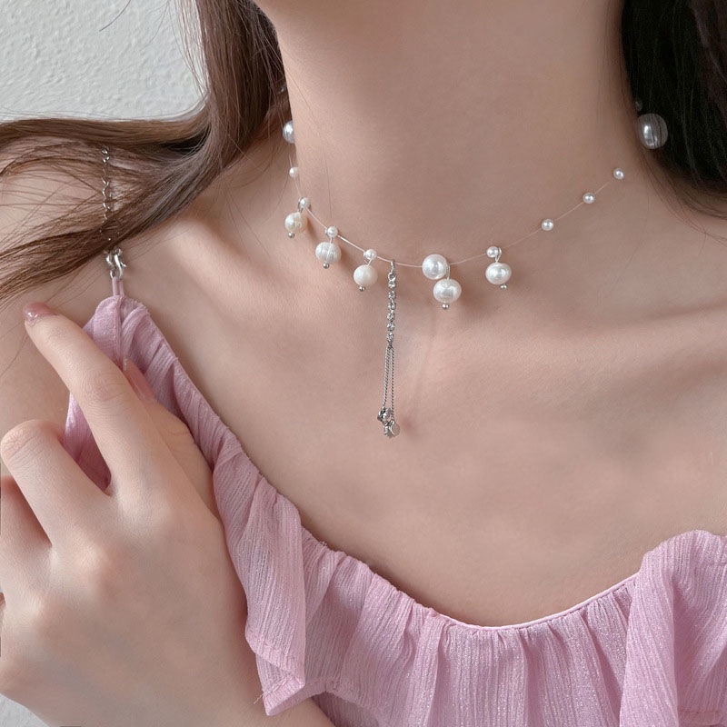 Detail Mutiara Fringe Kalung Aksesoris Cahaya Mewah Klavikula Rantai Pasang