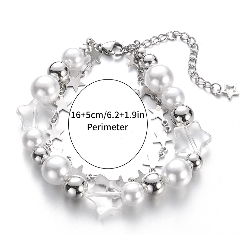 Aksesoris Fashion > Gelang Tangan & Bangle > Mutiara Perhiasan Aksesoris Kristal Pentagram Pearl Beaded Bracelet Double Pearl Beaded Bangles Adjustable Star Link Bracelet Vintage Aesthetic Charm Double Layer Chain