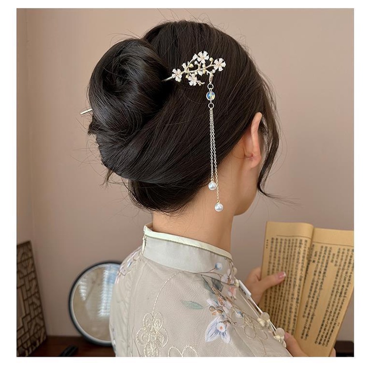 Nama: Jepit rambut bunga berlian imitasi Rumbai Mutiara Baru Cina modern jepit rambut kelas atas musim panas