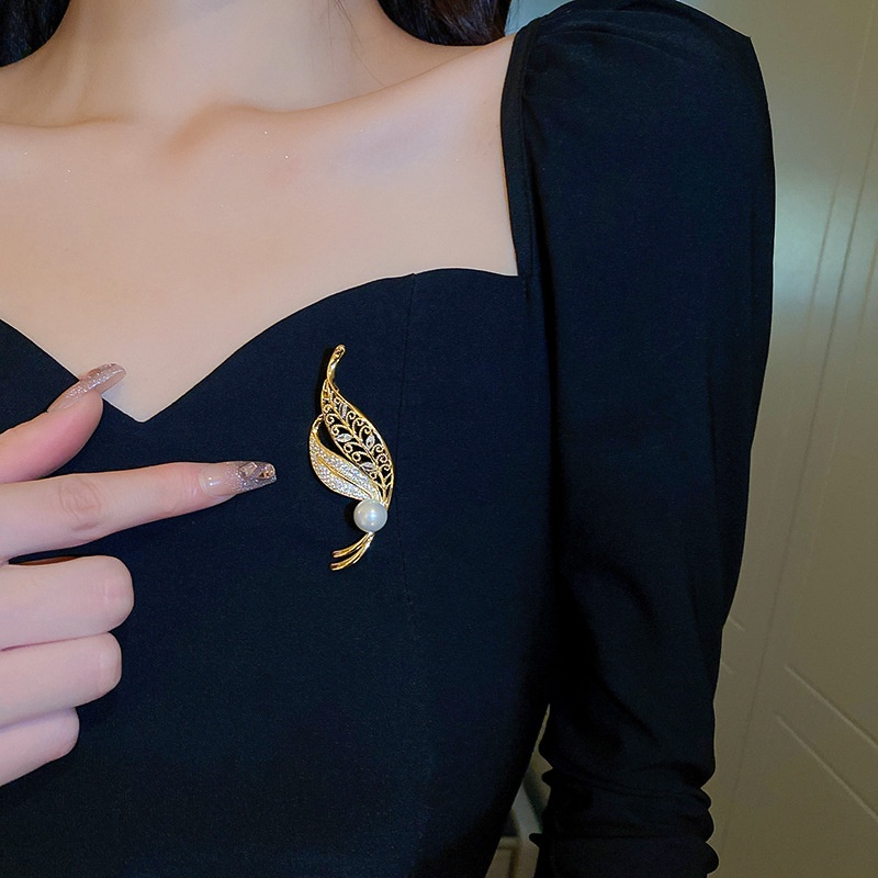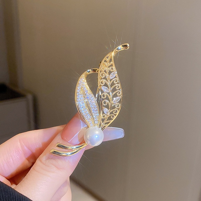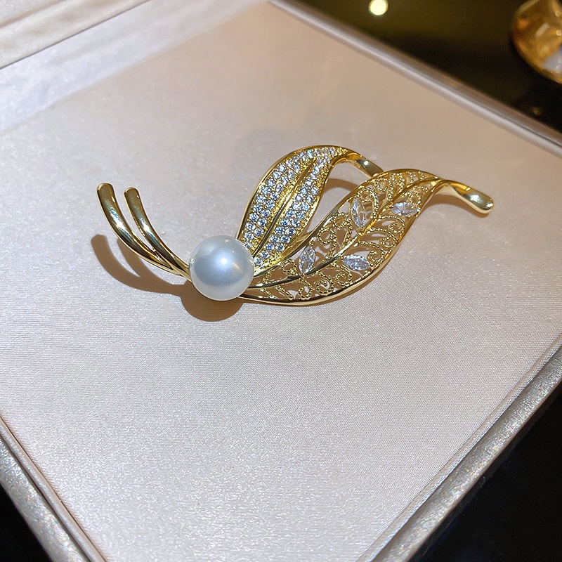 Detail Mutiara Zirkon Daun Bros Mode Bermutu Tinggi Temperamen Paduan Bros Pin