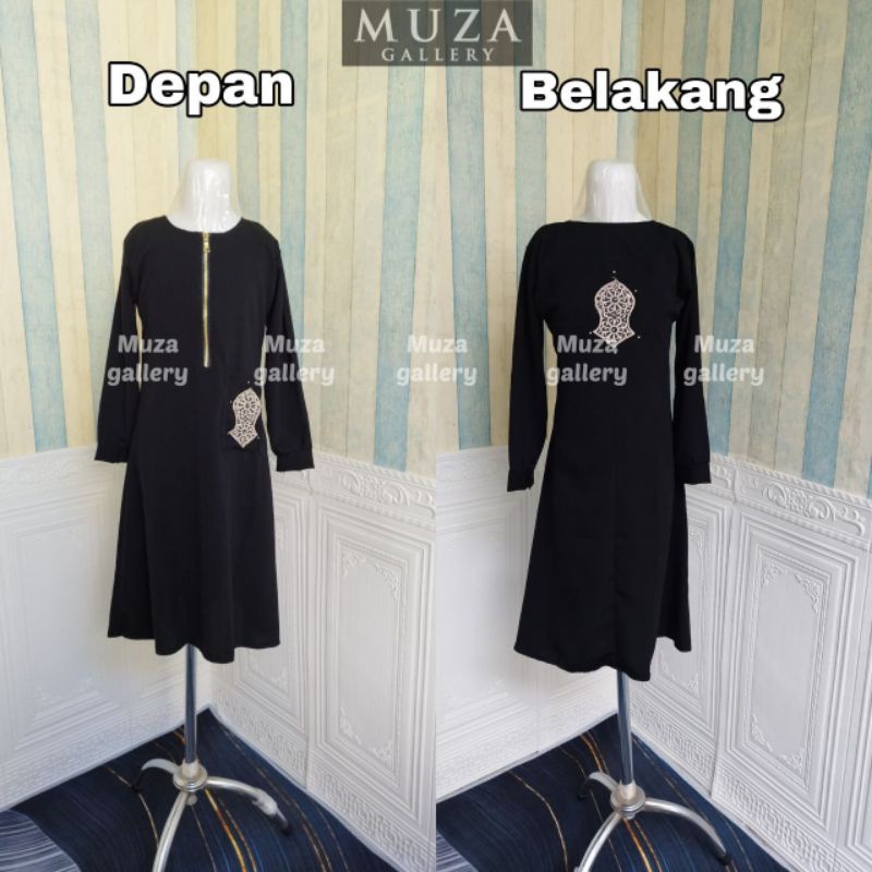 Deskripsi produk : ✅ Bahan jetblack saudi premium ✅ Kombinasi bordir komputer ✅ Aplikasi ziper emas ✅ Ada saku ✅ Tanpa pasmina
