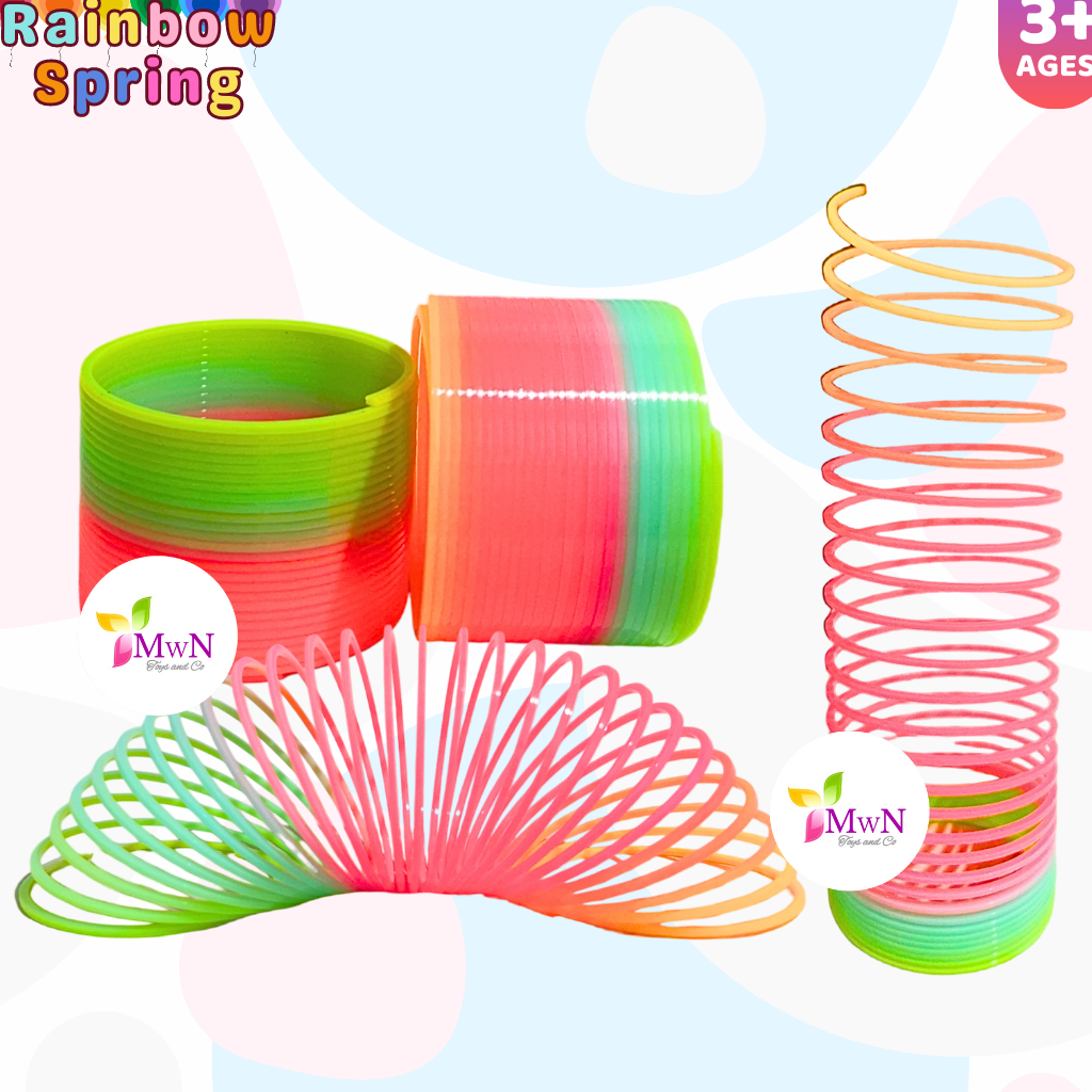 DESKRIPSI Mainan rainbow pring magic ini bisa jadi pelepas stres ketika Anda sedang cemas ataupun melamun. Begitu menyenangkan ketika melihat warna-warna yang dihasilkan oleh daya pegas per ini. Mainan masa kecil ini juga memiliki bentuk yang portable, sehingga mudah dibawa ke mana saja.