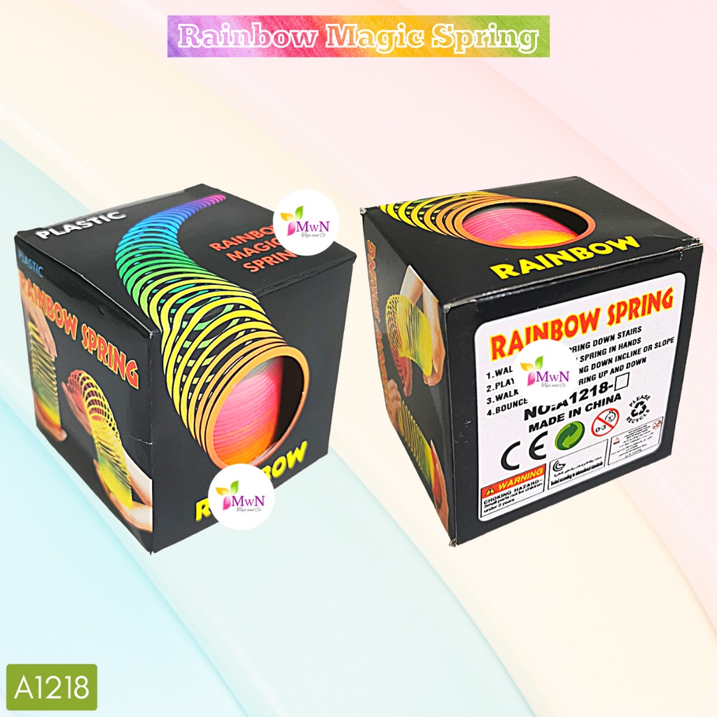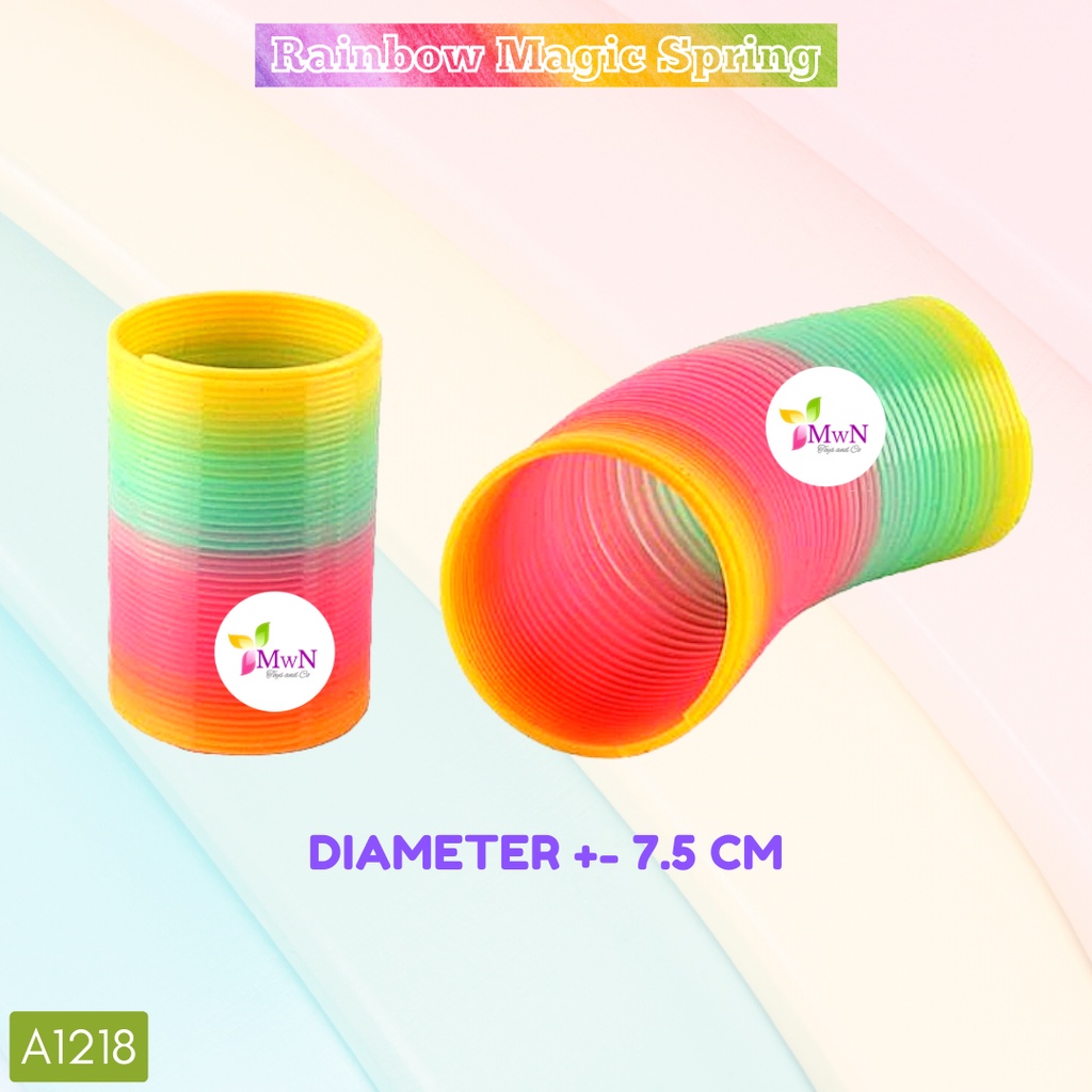 DESKRIPSI Mainan srainbow pring magic ini bisa jadi pelepas stres ketika Anda sedang cemas ataupun melamun. Begitu menyenangkan ketika melihat warna-warna yang dihasilkan oleh daya pegas per ini. Mainan masa kecil ini juga memiliki bentuk yang portable, sehingga mudah dibawa ke mana saja.