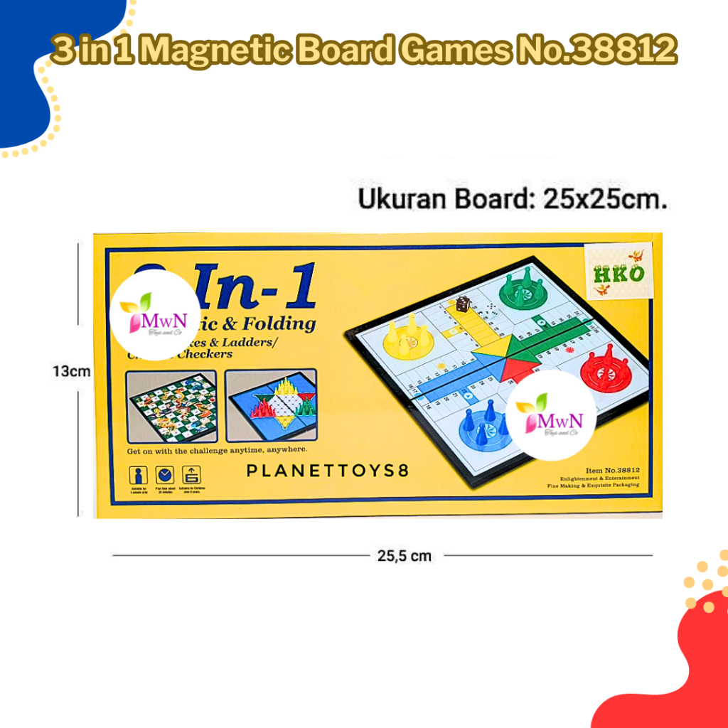 Spesifikasi Produk : - 3 Game dalam satu Papan ( Tinggal diganti ). - Mengandung magnet - Mudah untuk dirapikan - Dimensi Barang Panjang : 25 cm x Lebar : 25 cm x Tinggi : 2 cm - Dimensi Kemasan Panjang : 27 cm x Lebar : 15 cm x Tinggi : 10 cm