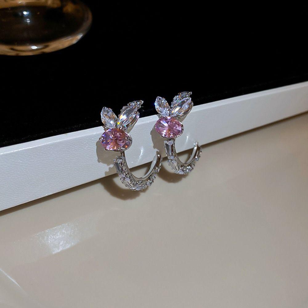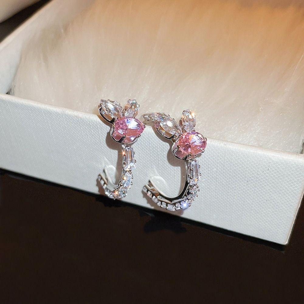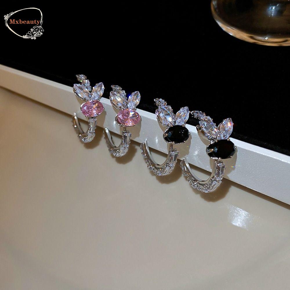 Paket termasuk: 1 Pasang Anting-Anting Anting Wanita Gaya Korea Anting Fashion Perhiasan C Bentuk Kelinci Manis Tembaga Zirkon Mini Fashion Mewah Kepribadian Perak Kreatif Keren Manis