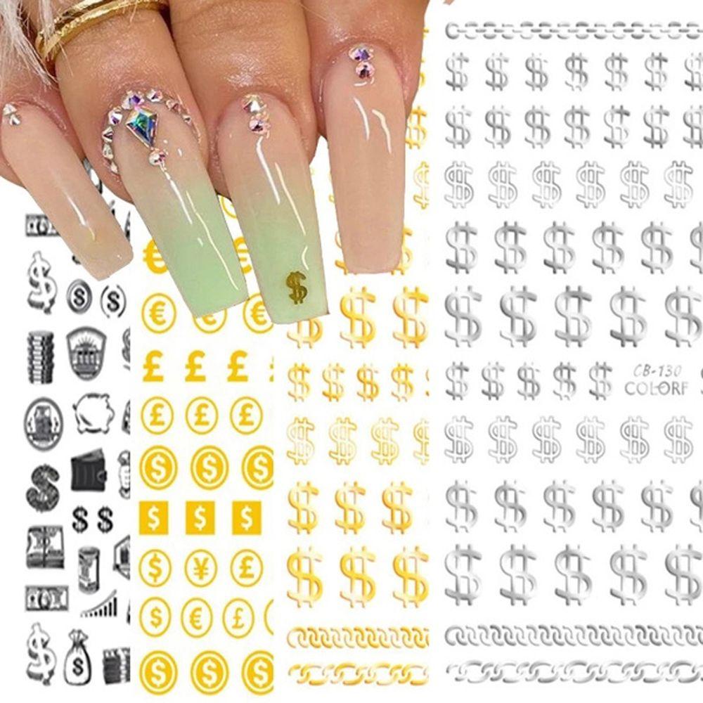 Mxbeauty Dollar Sign Stiker Kuku Wanita Gadis Uang Kekayaan Kaya Gaya Nail Art Tips 3D Kuku Decals